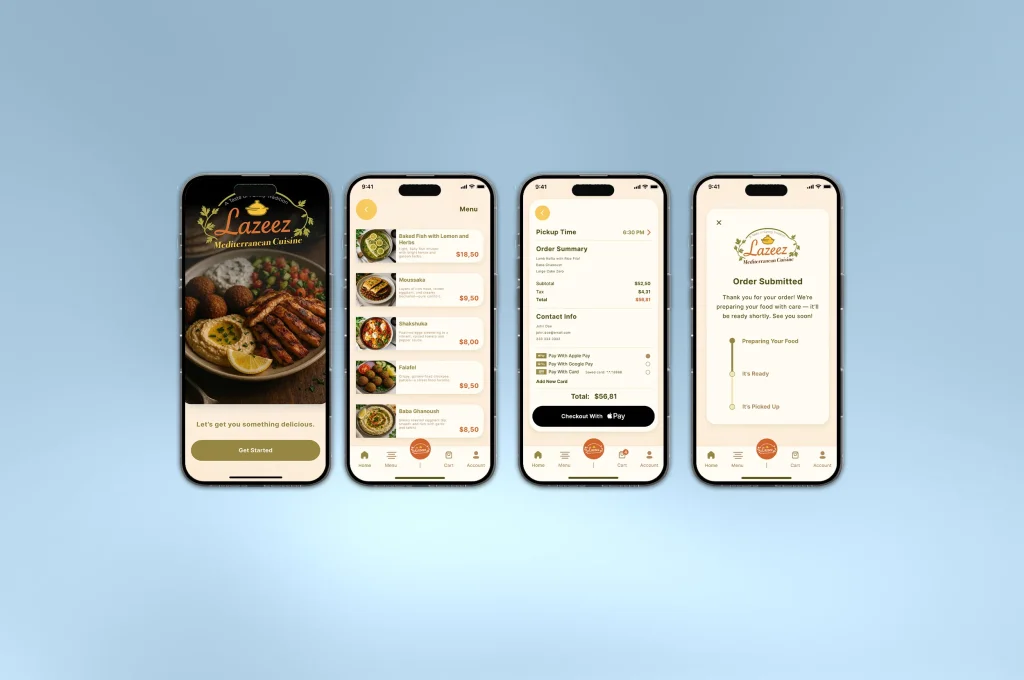 I led an eight-week project to design a mobile app for Lazeez Mediterranean Restaurant, a local eatery known for its authentic food. This initiative addressed the restaurant’s lack of an efficient digital ordering system, which previously led to long wait times, manual credit card entry over the phone, and a difficult-to-navigate text-based menu. The project’s goal was to create a fast, intuitive, and visually engaging app that allows customers to easily browse the menu, place orders, and manage pickups, effectively improving their experience and encouraging loyalty.